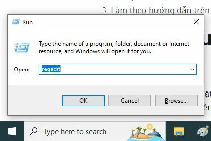 regedit, sau đó nhấn Enter. - Tìm đến đường dẫn:
