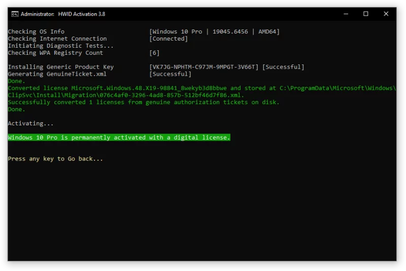 - HWID (Digital License) - kích hoạt vĩnh viễn Windows.